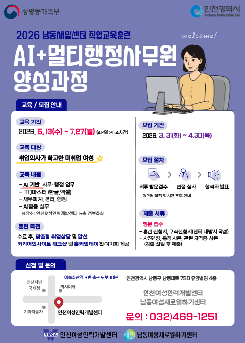 [새일센터 직업교육훈련) AI+멀티행정사무원 양성과정