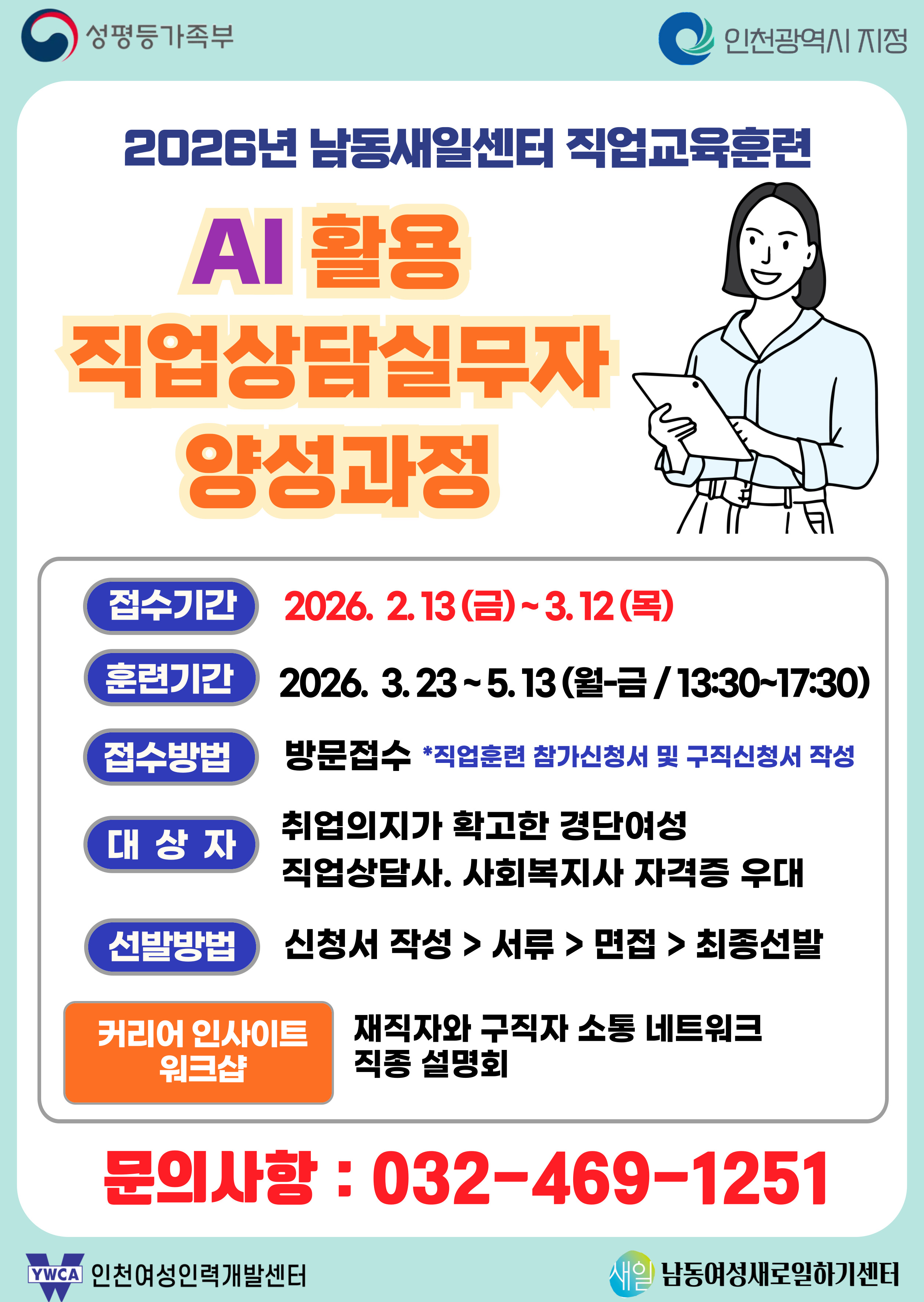 인천여성인력개발센터 직업훈련 및 프로그램 운영 담당자 최종합격자 공고